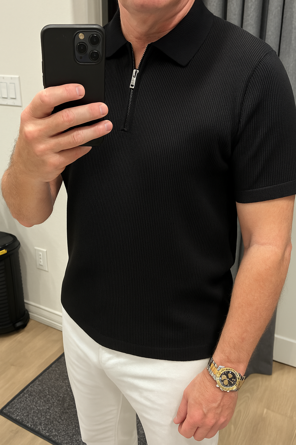 This Dallas Two Tone Polo combines refined style with practical design. Featuring subtle contrast trim on the collar, placket, sleeves, and pocket, it delivers a modern, polished look. Made from smooth, breathable fabric, it ensures comfort throughout the day. The chest pocket adds a functional yet sophisticated detail, making this polo ideal for both casual and smart settings.