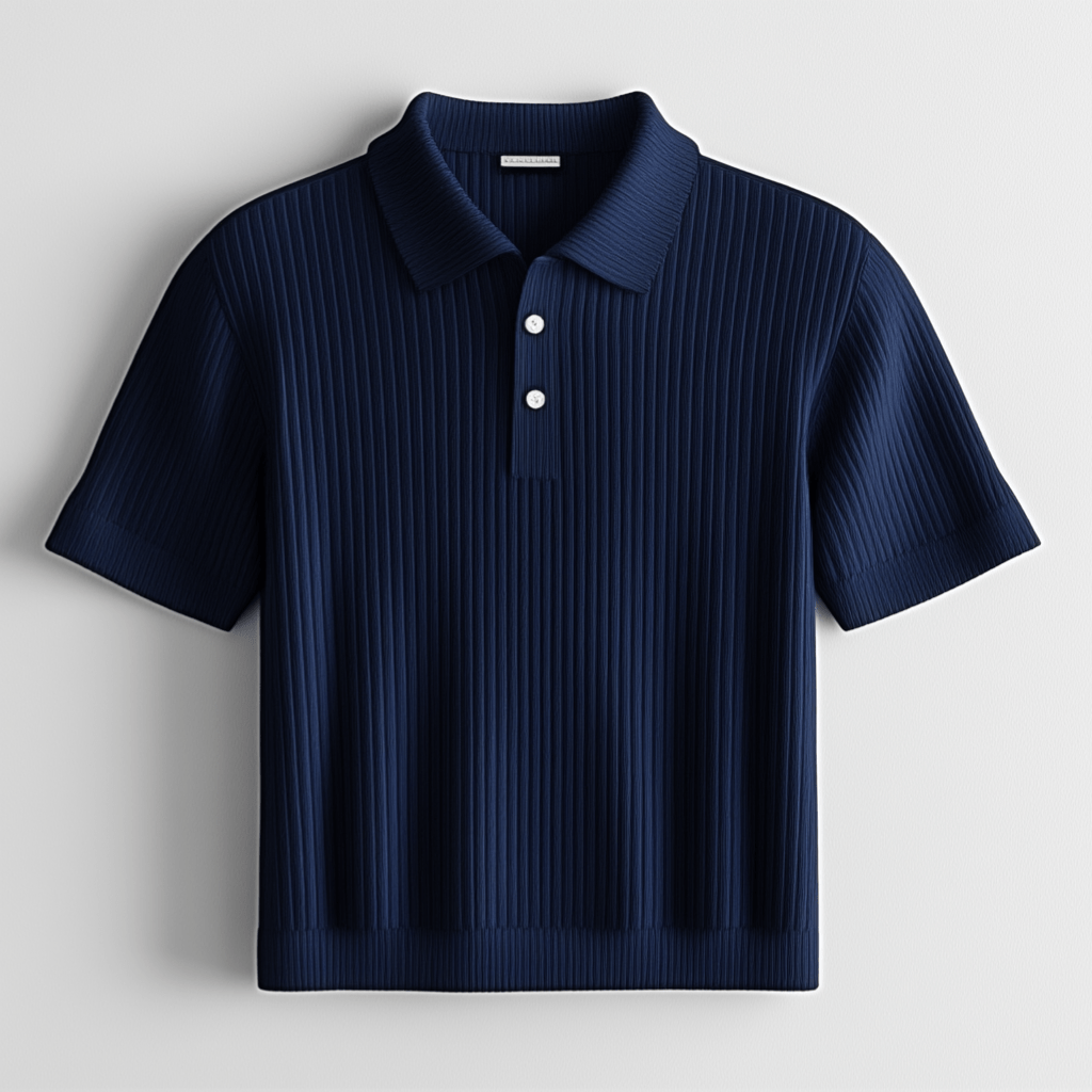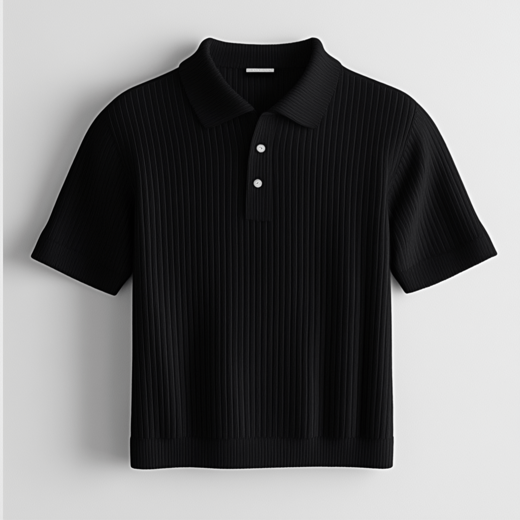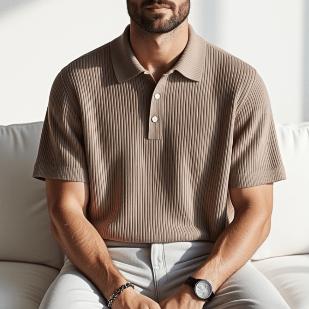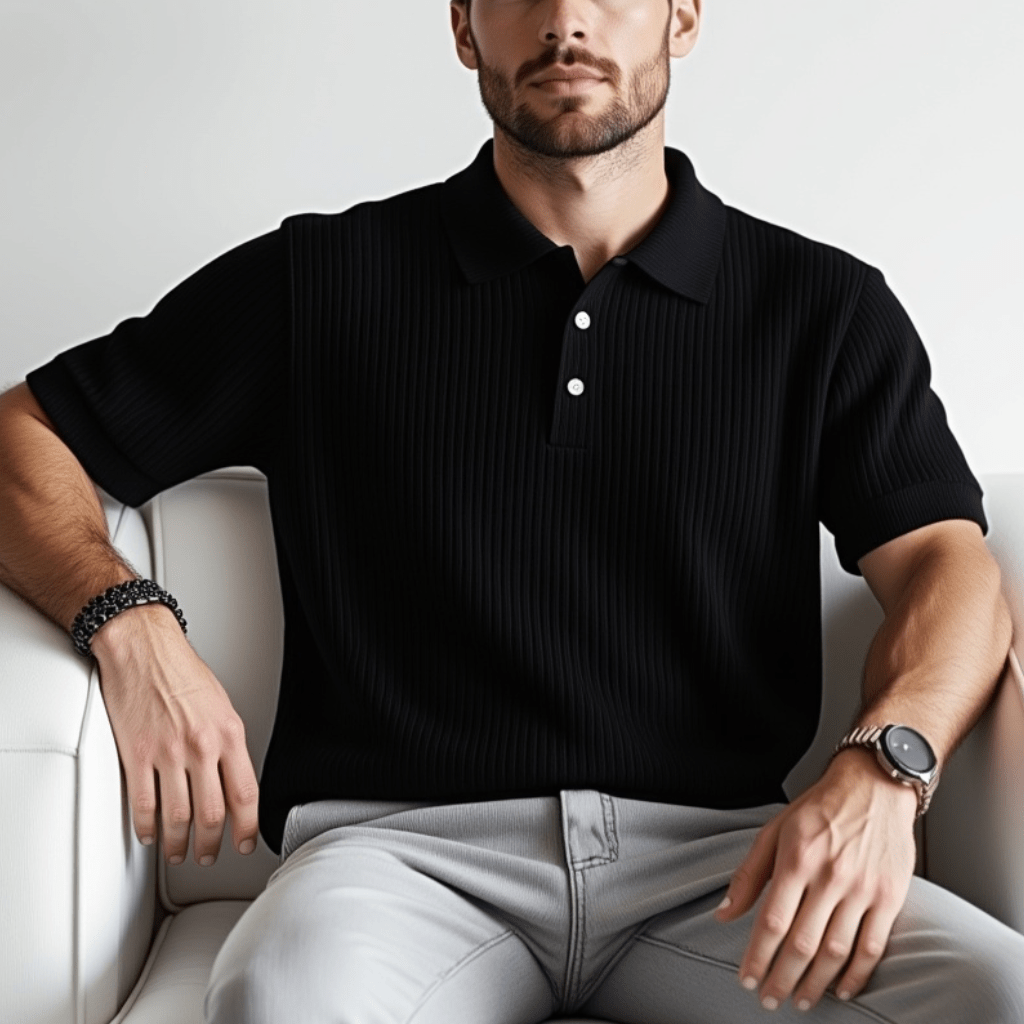 The Enzo Shaker Shirt combines shaker-stitch texture and bold horizontal ridges for a modern, structured look. Short sleeves add a relaxed touch while maintaining a polished appearance. The clean, buttonless placket and tonal folded collar provide a refined finish. Elevate your style with this versatile and sophisticated shirt.