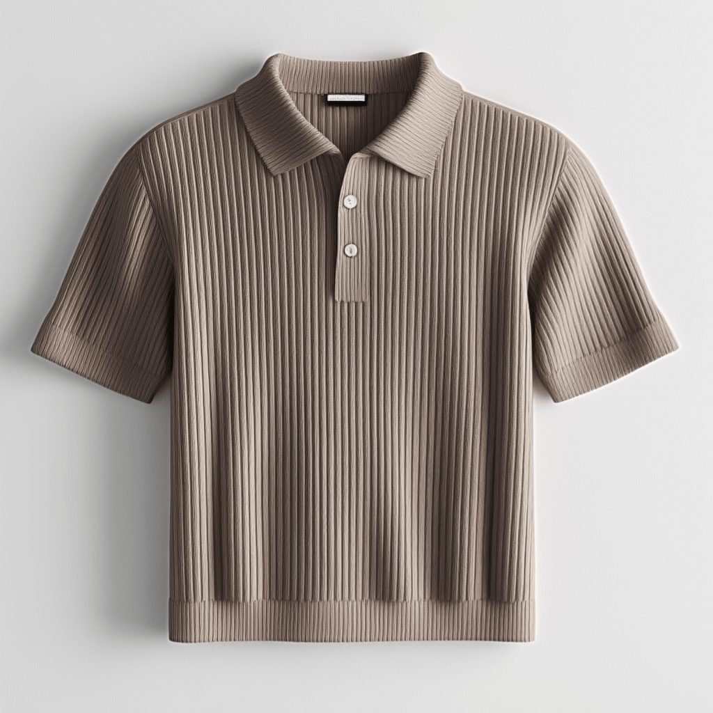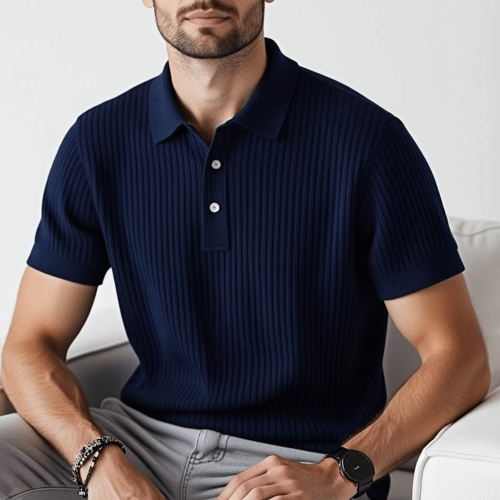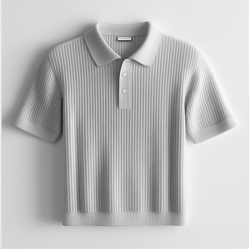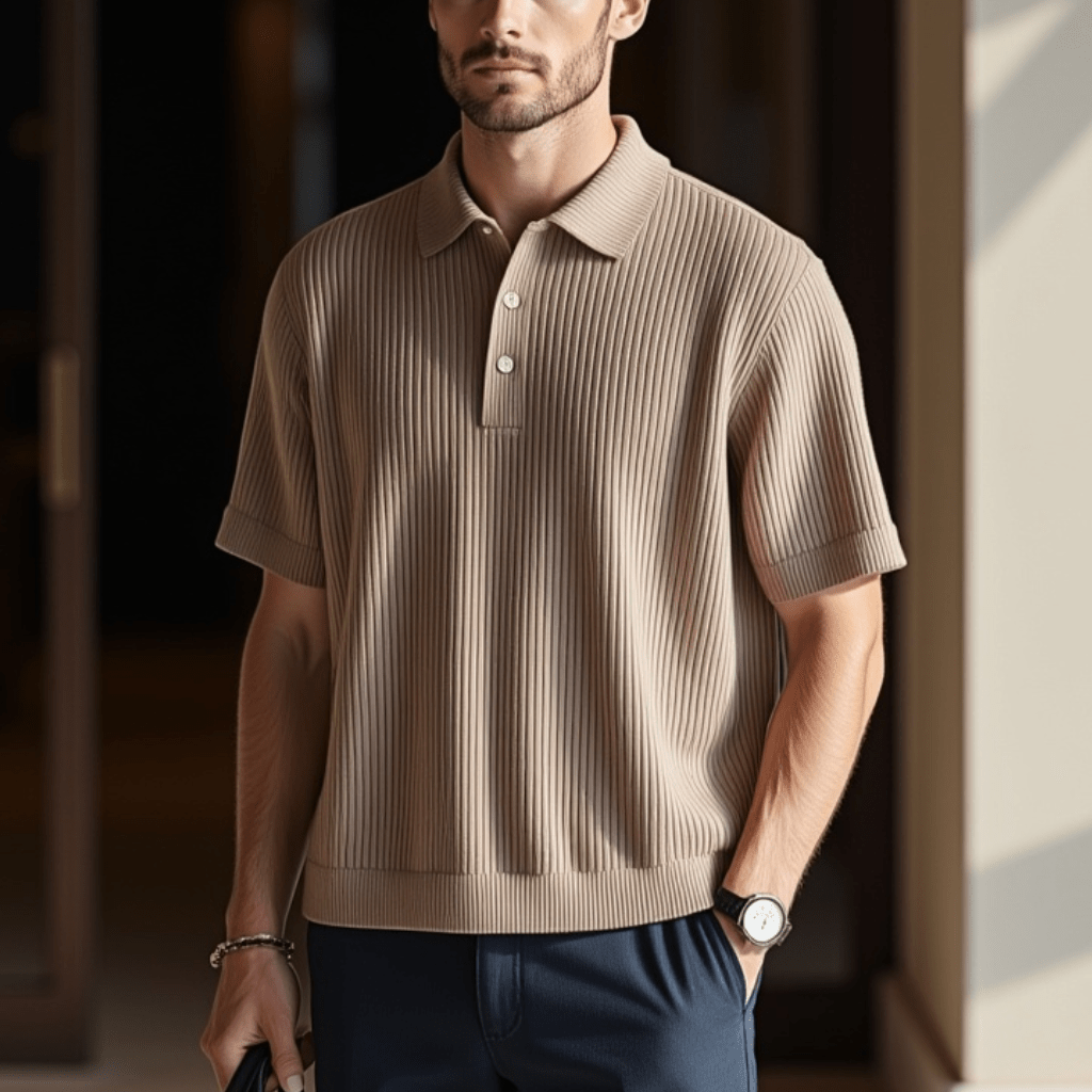 The Enzo Shaker Shirt combines shaker-stitch texture and bold horizontal ridges for a modern, structured look. Short sleeves add a relaxed touch while maintaining a polished appearance. The clean, buttonless placket and tonal folded collar provide a refined finish. Elevate your style with this versatile and sophisticated shirt.